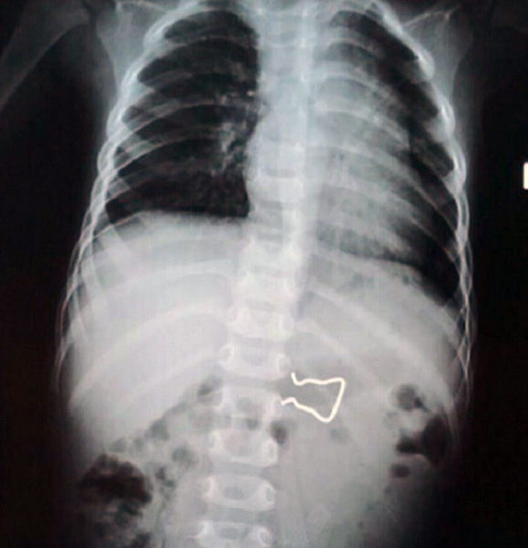 Bé trai 18 tháng tuổi nuốt cả móc kim loại vào bụng trong lúc chơi một mình