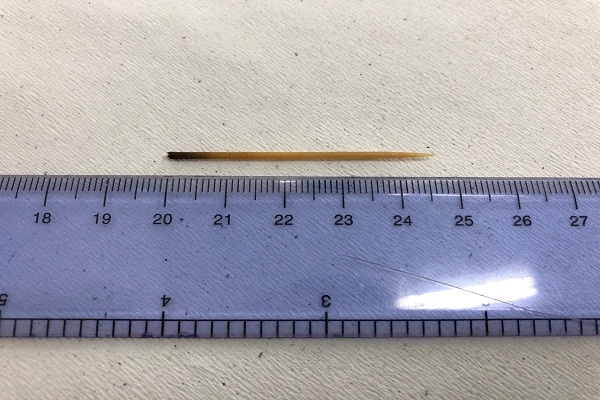 Dị vật là một cây tăm xỉa răng dài 5cm được lấy ra khỏi dạy dày của bệnh nhân.