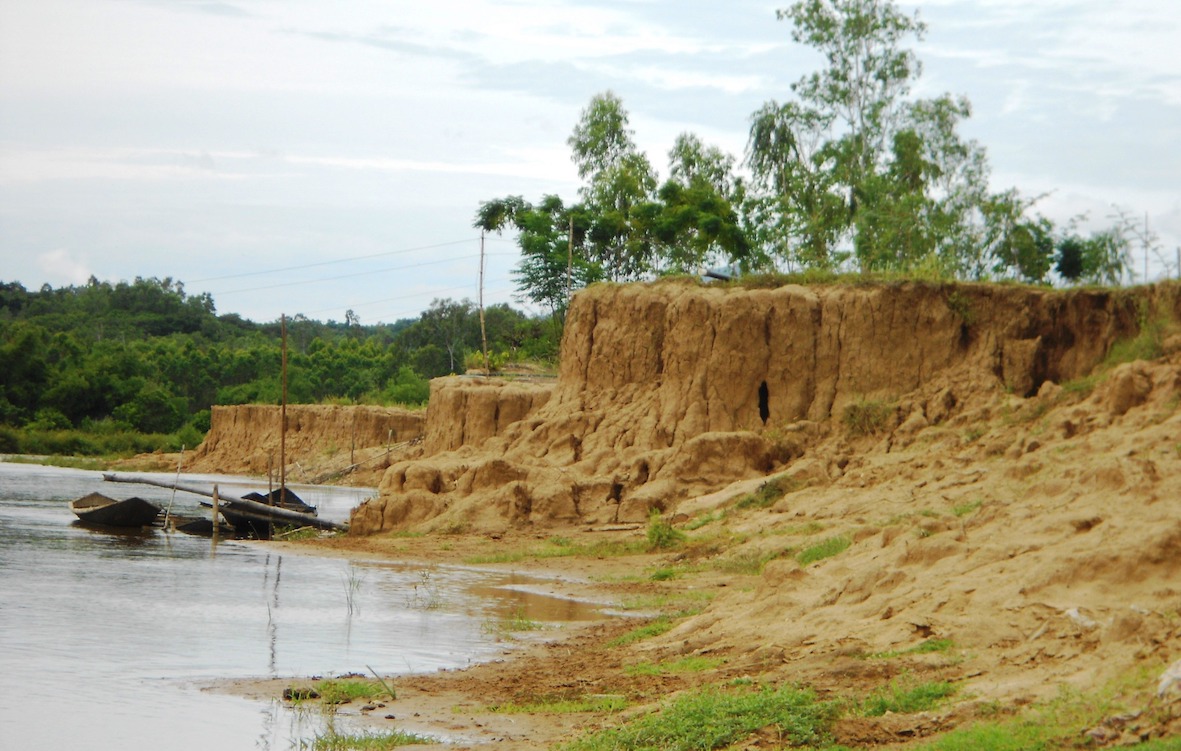 Theo một số người dân địa phương cho biết, 10 năm trở lại trước, khoảng cách từ bờ sông đến vùng đất canh tác dọc sông rộng gần 10m. Nhưng mấy năm trở lại đây, tình trạng xâm thực ngày càng sâu và dài (mỗi năm ăn sâu vào trong khoảng 1- 2m). Đến nay, bờ sông đã tiến sát, cuốn trôi nhiều diện tích đất canh tác tại đây.