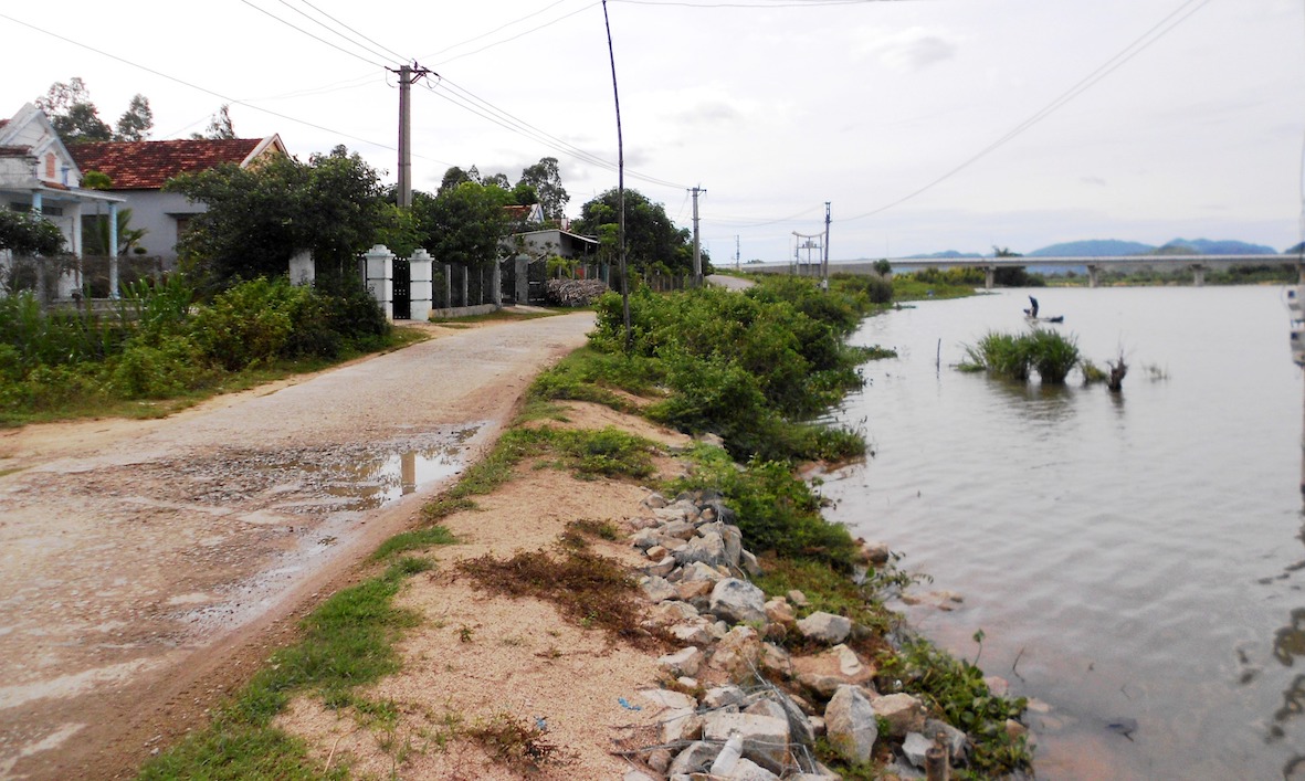 Tại vùng đê sông Véo (một nhánh sông Kôn) thuộc thôn Trường Định 1, xã Bình Hoà (huyện Tây Sơn) hàng năm vào mùa mưa lũ, hàng trăm hộ dân sinh sống tại đây lại ngay ngáy lo nước lũ dâng cao, gây ngập nhà cửa, sợ “hà bá” gặm mòn bờ sông, “ăn” lấn vào nhà cửa. Được biết, trong đợt lũ cuối năm 2016 đã gây vỡ đê, rất may chính quyền địa phương đã kịp thời huy động lực lượng tại chỗ hàn khẩu bờ đê nên không gây thiệt hại nhiều.