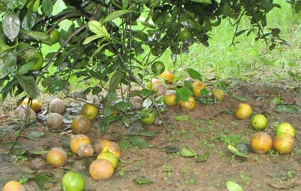 Các cây cam bị bệnh có biểu hiện bệnh ngà càng nặng và rụng nhiều, tỉ lệ rụng khoảng 70-80%, thiệt hại ước tính khoảng 400-500 triệu đồng.