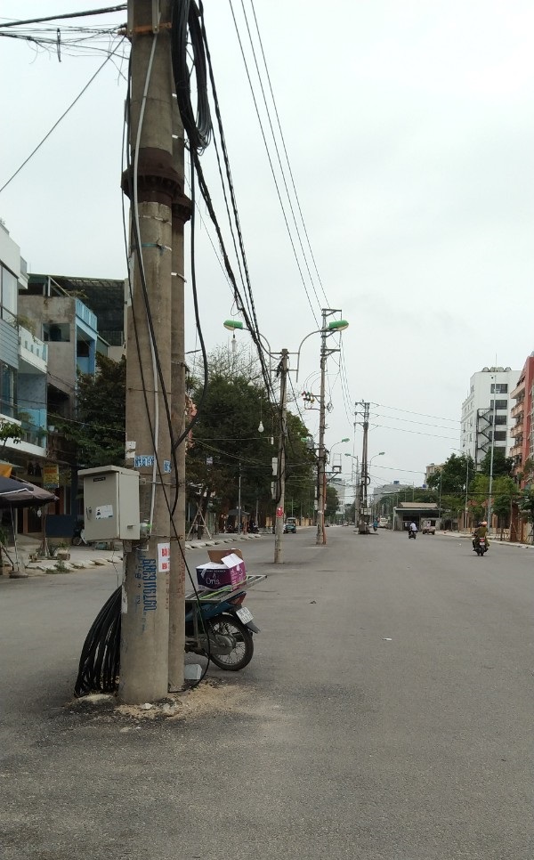 (SK&MT) - Đoạn đường Thanh Niên chạy qua địa bàn phường Trường Sơn, Thành phố Sầm Sơn (Thanh Hóa) có khoảng vài chục cột điện nằm ở giữa đường. Những cây cột điện này không chỉ gây mất mỹ quan đô thị, ảnh hưởng tới an toàn giao thông và còn nguy hiểm cho người đi đường mỗi khi mưa bão.