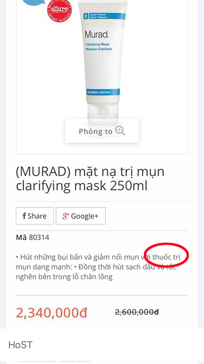 Hơn nữa, trên trang Wed còn có nhiều từ được “lưu ý” như: “ Đặc trị, điều trị mụn nhanh chóng, hoàn toàn, diệt khuẩn, làm lành vết thương…”