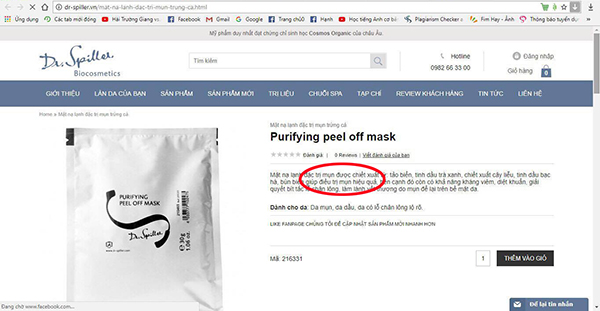 Thông tin sản phẩm mỹ phẩm Dr- Spiller trên trang Wed với nhiều công dụng “Đặc trị, điều trị mụn nhanh chóng, hoàn toàn”.