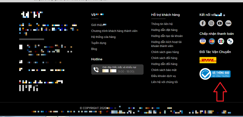Biểu tượng “Đã thông báo Bộ Công thương” của một trang web bán hàng.
