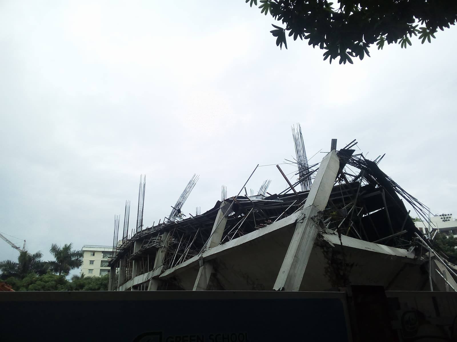 Công trình đang thi công Trường mầm non Vườn Xanh bỗng nhiên bị sập 500 m2 sàn.