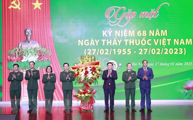Chiều 27/2, tại Bệnh viện Trung ương Quân đội 108 (Hà Nội), Ủy viên Bộ Chính trị, Chủ tịch Quốc hội, Giáo sư, Tiến sỹ Vương Đình Huệ tham dự Gặp mặt kỷ niệm 68 năm Ngày Thầy thuốc Việt Nam (27/2/1955-27/2/2023).