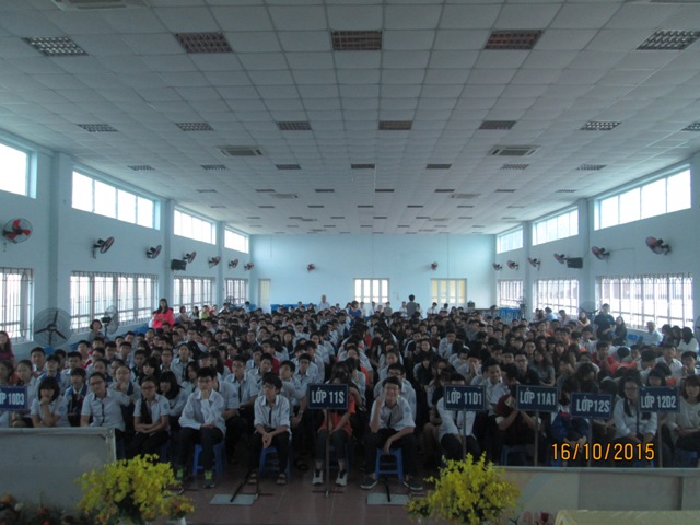 SK&MT - Sáng ngày 16/10/2015 đội CSGT phối hợp với đội An ninh (Công an quận Bắc Từ Liêm) đã tổ chức chương trình giáo dục kỹ năng sống tuyền truyền phổ biến kiến thức về ATGT, tình hình tai nạn giao thông trên địa bàn thành phố Hà Nội cho 425 học sinh và hơn 30 giáo viên, nhân viên trường THPT Đoàn Thị Điểm.