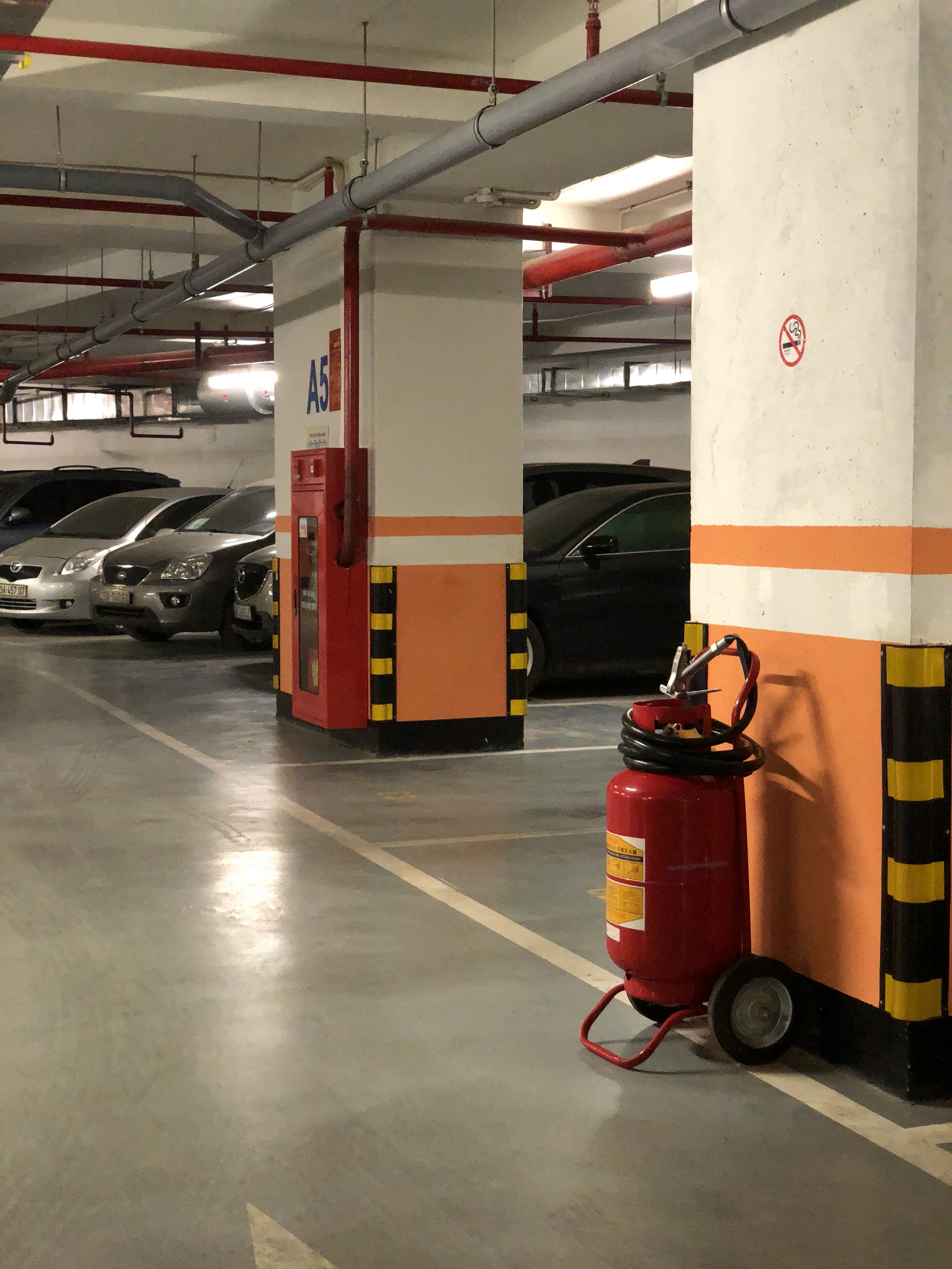 Các tầng hầm với các thiết bị báo cháy và chữa cháy tại chỗ.