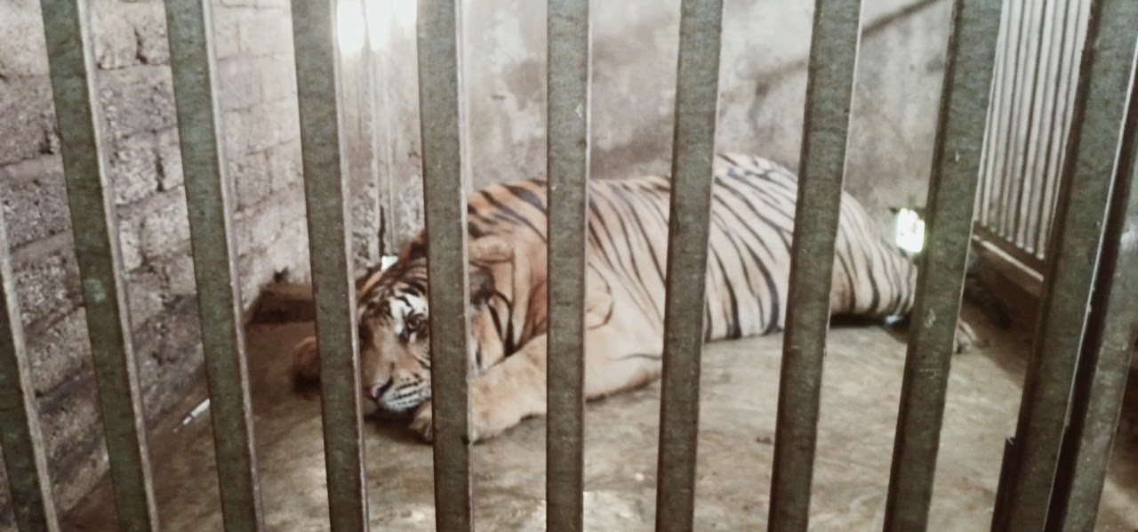 Hổ bị nuôi nhốt trong "ngục tối" ở Yên Thành, tỉnh Nghệ An, trước giờ lực lượng công an ập vào phá án, cứu hộ động vật quý hiếm.