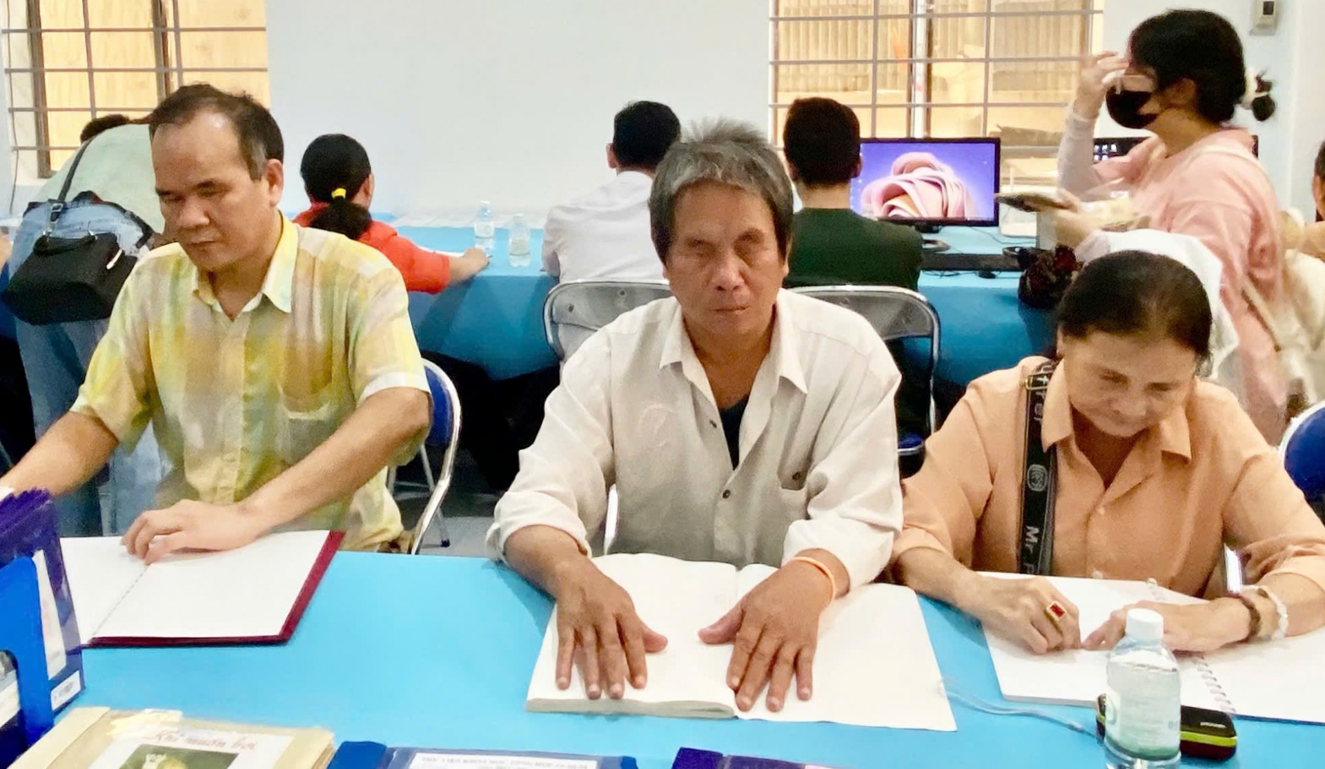 | Các độc giả khiếm thị tại phòng đọc. |