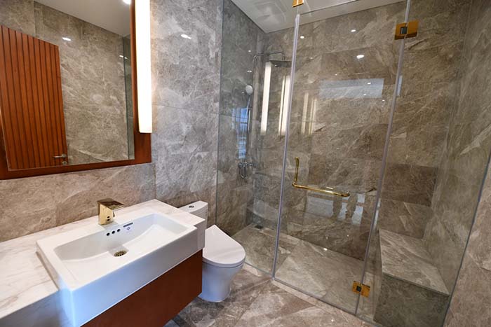 Trang thiết bị phòng tắm và vệ sinh được nhập khẩu từ các thương hiệu hàng đầu khu vực và thế giới như Kohler, Grohe…