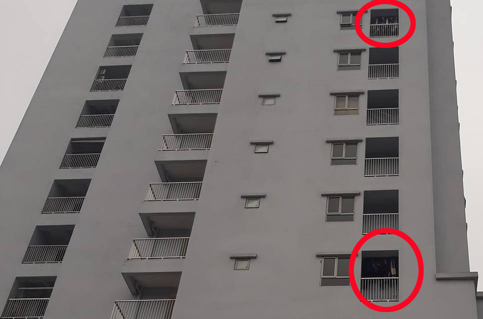 Rất nhiều quần áo được phơi ngay ban công của tòa nhà.
