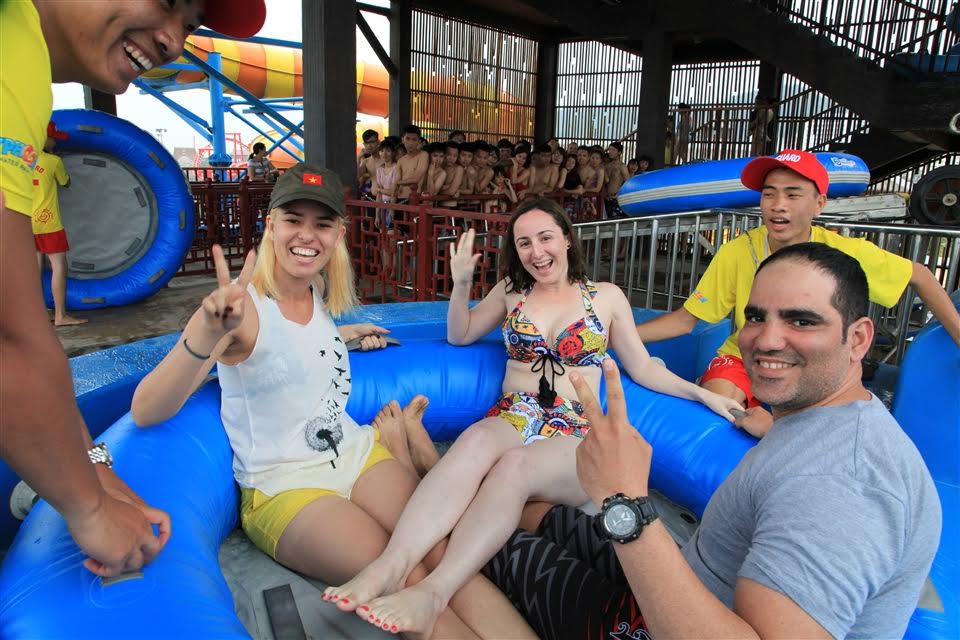 Trong số rất đông du khách đến Typhoon Water Park, có nhiều khách nước ngoài. Họ không khỏi phấn khích trước nguồn vui mới ở Vịnh Hạ Long. Một du khách Pháp chia sẻ: “Tôi không nghĩ vịnh Hạ Long lại có một trải nghiệm tuyệt vời chẳng kém các công viên nổi tiếng thế giới như thế này”.