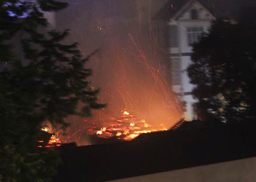 Ngọn lửa thiêu rụi toàn bộ gian nhà tổ của ngôi chùa cổ. (Ảnh: Otofun.net.vn)
