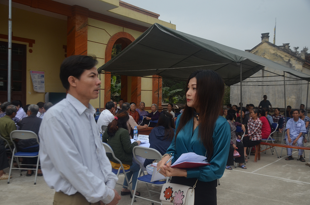Ông Đỗ Anh Tuấn, Trưởng thôn Xuân Thọ chia sẻ với Trưởng ban Điện tử Báo Sức khỏe & Môi trường - bà Nguyễn Thị Bích Ngọc.
