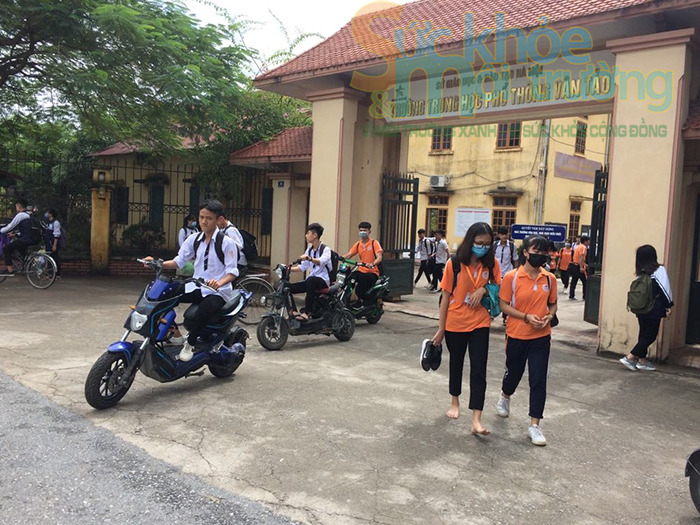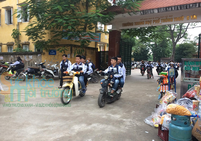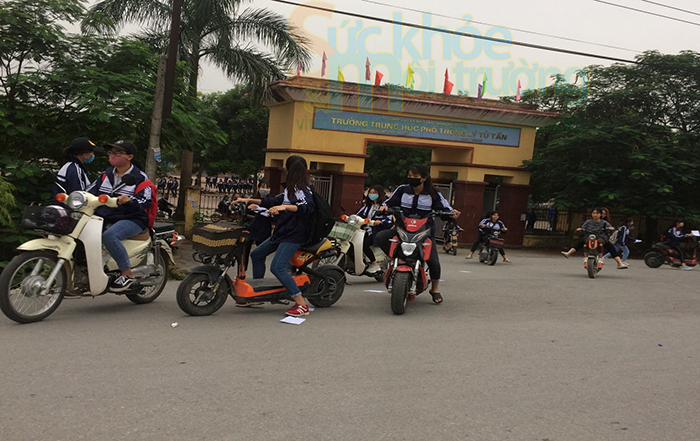 Vào tầm giờ cao điểm, khi các học sinh đến trường hoặc tan học, ghi nhận của PV Sức khỏe & Môi trường điện tử, nhiều học sinh có ý thức rất kém khi tham gia giao thông. Những cảnh học sinh đi xe đạp điện, xe máy điện, thậm chí là xe máy dàn hàng 2 hàng 3 tràn ra các lề đường của phương tiện khác. Nhiều học sinh không đội mũ bảo hiểm theo quy định, thậm chí có học sinh mang mũ nhưng lại cất trong giỏ xe hoặc treo trên xe.