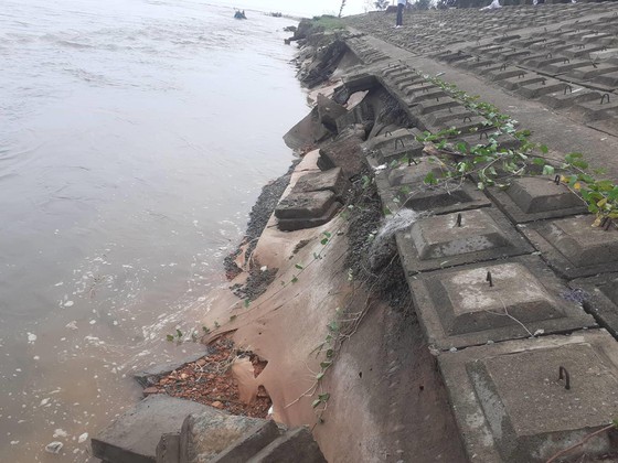 Đoạn đê bị sạt lở nghiêm trọng. Ảnh: SGGP