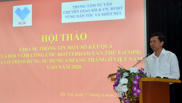 SK&MT - Ngày 27/6/2017, tại Hà Nội, Ủy ban Dân tộc phối hợp với Trung tâm thông tin tổ chức phi Chính phủ (NGOIC) và Viện Tài nguyên môi trường và Phát triển cộng đồng đã tổ chức Hội thảo chia sẻ thông tin một số kết quả của hội nghị Công ước Rotterdam lần thứ 8 (Cop 8) và lộ trình dừng sử dụng amiăng trắng ở Việt Nam vào năm 2020.