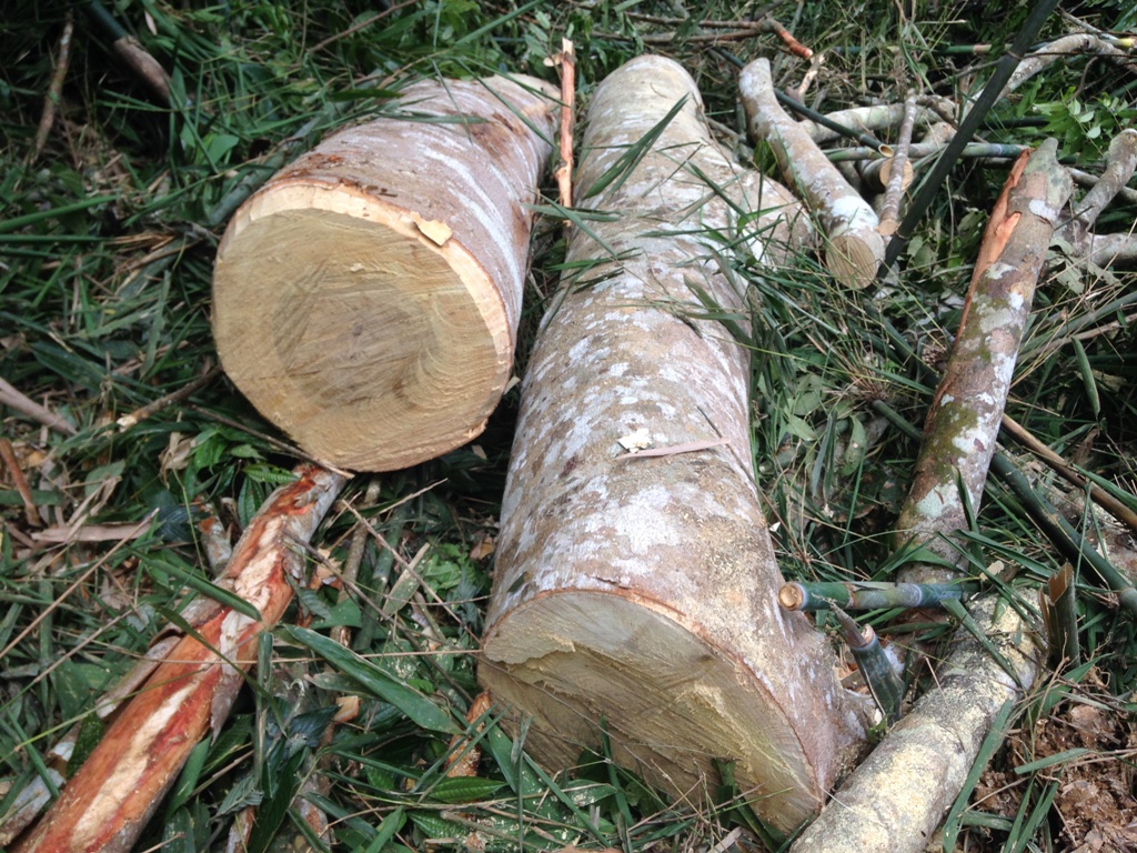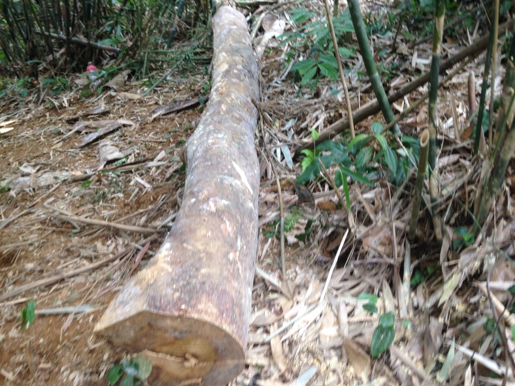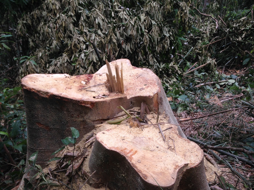 Chúng tôi đến các cánh rừng tự nhiên tại thôn Tú Tạo. Khi chúng tôi tiến vào trong khu rừng, hiện ra trước mắt là hàng loạt cây gỗ đã bị đốn hạ. Nhiều cây gỗ có đường kính 70- 90 cm, chiều dài gần 20 mét đã bị đốn hạ, thân gỗ đã được lấy đi, có những gốc cây cổ thụ nhựa sống còn đang chảy. Phía xa vọng lại tiếng cưa máy nghe ‘rè rè’.