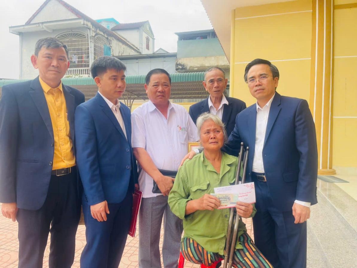 Các gia đình có hoàn cảnh đặc biệt xã Tiên Đồng nhận quà từ đoàn trao tặng |
