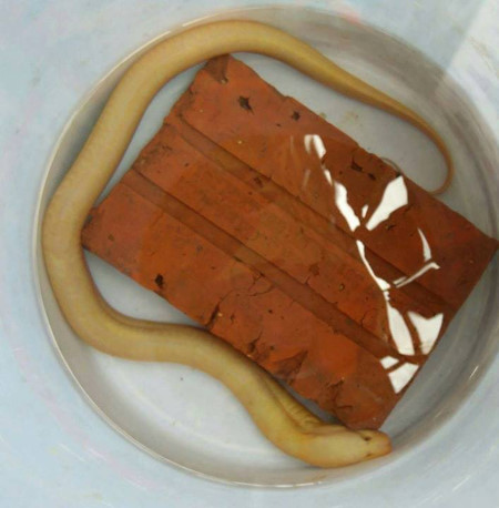 Con lươn có màu vàng lạ mắt tại nhà anh