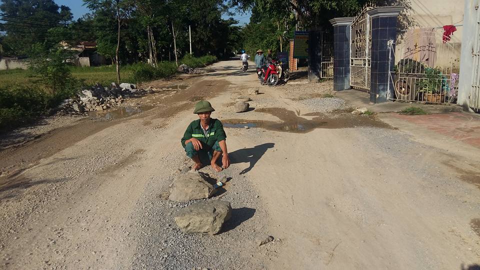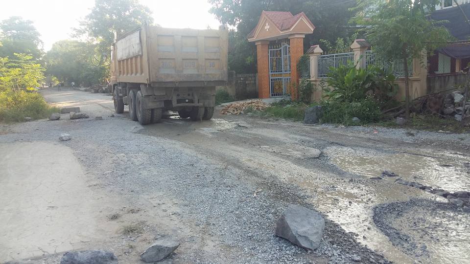 Bác Nguyễn Văn Hào (61 tuổi, đội 2, thôn Vạn Thành), cho biết: “Xe chở đá, chở mật đường làm hư hỏng con đường lại thêm bụi bặm ô nhiễm, nhưng mà họ chỉ có biết đi chứ không biết bảo vệ đường nên chúng tôi phải mang đá gạch ra để chặn xe”.