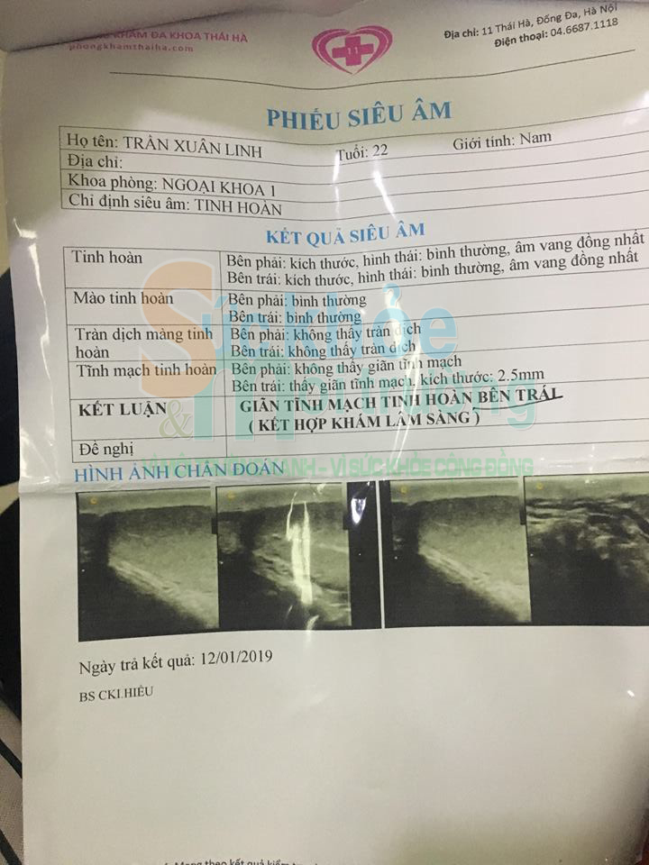 Cụ thể, theo phản ánh ngày 12/1/2019, anh Trần Xuân Linh đến PKĐK Thái Hà khám bệnh với lý do bệnh nhân bị đau tức tinh hoàn trái một năm. Sau khi khám tại đây, anh Linh được chẩn đoán giãn tĩnh mạch tinh hoàn trái, tinh trùng kém, viêm tiết niệu, dài da bao quy đầu. Anh Linh được chỉ định điều trị xét nghiệm, cắt da bao quy đầu, sử dụng thuốc Levofloxacin 0,2g 100ml (2 chại) và Fluconazol 0,2g 100ml (1 chai), nằm chăm sóc tại Phòng khám. Chi phí cho tất cả dịch vụ khám và điều trị là 24.000.000 đồng.