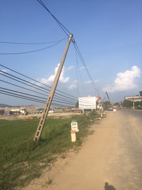 Theo ghi nhận của phóng viên tại hiện trường, có khoảng 200 mét dây bị hư hỏng, 4 cây cột đã bị đổ gãy hẳn, 2 cây còn lại đang nghiêng ra phía đường tỉnh lộ và có thể gãy bất cứ lúc nào, tiền ẩn nguy hiển đối với người, phương tiện tham gia giao thông.