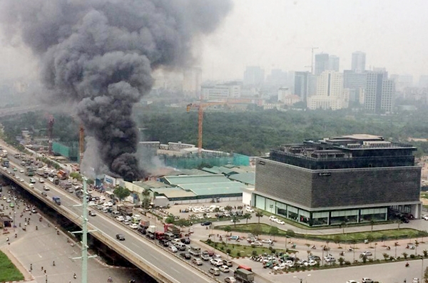Địa điểm xảy ra đám cháy được xác định tại công trường Công ty CP Địa ốc dầu khí viễn thông, lô E1, 2 đường Phạm Hùng. Đây là kho chứa gỗ và điều hòa. Thời điểm phát hiện ra đám cháy, mọi người tại đây đã di chuyển rất nhiều bộ điều hoà ra ngoài.