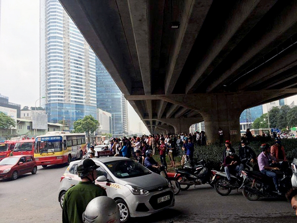 Hàng trăm người dân hiếu kỳ đứng xem phía trước công trường.