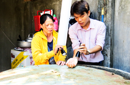 Kiểm tra lăng quăng tại Khánh Vĩnh, Khánh Hòa. Ảnh: Thảo Ly