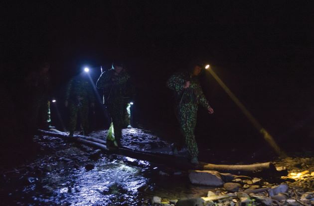 Các chiến sĩ vượt đèo, lội suối tuần tra