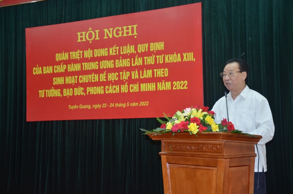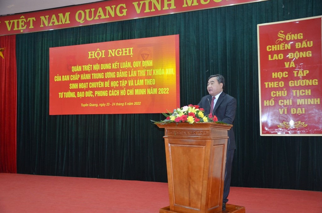 Tại Hội nghị, các đại biểu đã được nghe PGS.TS.NGND Phùng Hữu Phú - nguyên Phó Chủ tịch Thường trực Hội đồng lý luận Trung ương đã giới thiệu, truyền đạt nội dung cơ bản của Hội nghị lần thứ tư Ban Chấp hành Trung ương (khóa XIII) về thực hiện Kết luận số 21, ngày 25/10/2021 của Ban Chấp hành Trung ương khóa XIII về đẩy mạnh xây dựng, chỉnh đốn đảng và hệ thống chính trị; kiên quyết ngăn chặn, đẩy lùi, xử lý nghiêm cán bộ, đảng viên suy thoái về tư tưởng chính trị, đạo đức, lối sống, biểu hiện "tự diễn biến", "tự chuyển hóa"; Quy định số 37, ngày 25/10/2021 của Ban Chấp hành Trung ương khóa XIII về những điều đảng viên không được làm.