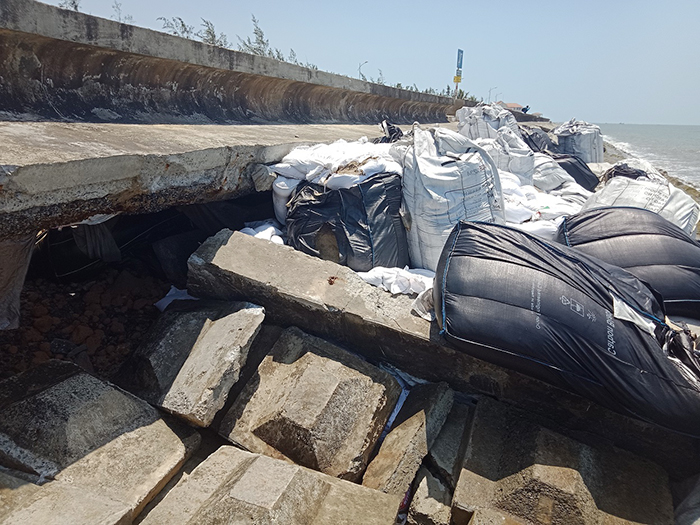 Mới đây do ảnh hưởng do mùa đông bắc, khiến sóng biển đánh mạnh gây ra sụp lún hư hỏng thêm hai điểm khác ở tuyến bờ kè bờ biển Cửa Đại.