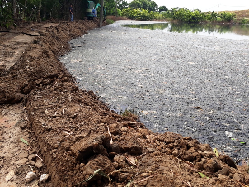 Bờ của các bể lắng, lọc rất thô sơ, đơn giản khiến nước bị rò rỉ khắp nơi