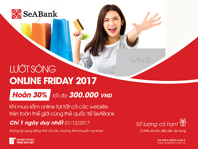 Lướt sóng Online Friday 2017” với mức hoàn tiền lên tới 30% giá trị thanh toán.