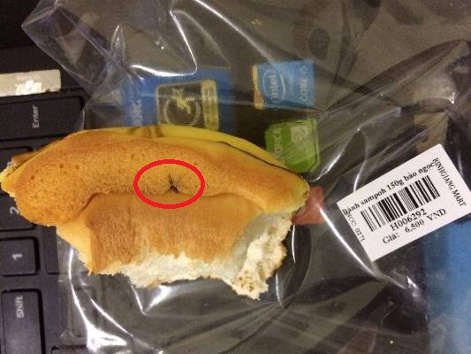 Trước đó, Sức khoẻ & Môi trường điện tử nhận được phản ánh của anh Hoàng C..Theo đó, khi anh C. đang ăn chiếc bánh ngọt mang nhãn “Bánh Sampoh - 150g Bảo Ngọc” được mua tại siêu thị Bình Giang thì phát hiện dị vật gắn liền trong mẩu bánh. Nhìn bằng mắt thường dị vật giống con muỗi.