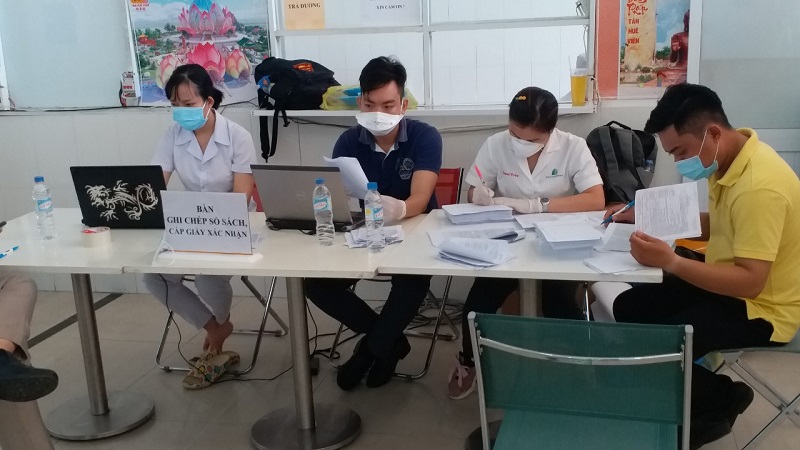 Bàn làm thủ tục tiêm vắc-xin cho công nhân KCN An Nghiệp