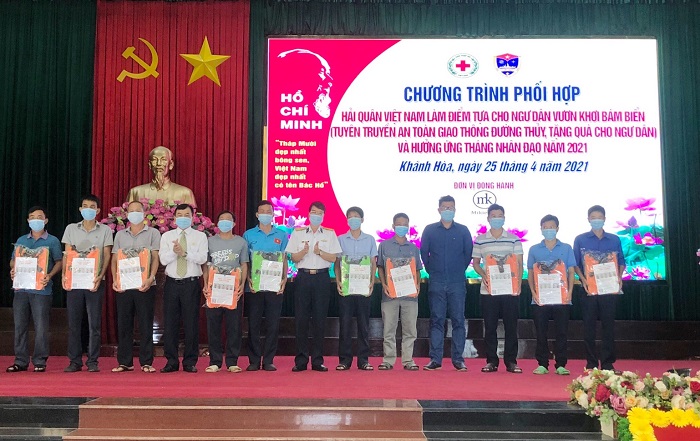Đó là các ngư dân ở các phường, xã trên địa bàn TP. Nha Trang như: Vĩnh Nguyên, Vĩnh Trường, Phước Đồng, Lộc Thọ, Vĩnh Hải, Vĩnh Phước kết nghĩa với Học viện Hải quân được nhận các bộ áo phao cứu sinh trên. Đây là loại áo phao đặc chủng chuyên dành cho ngư dân đi biển. Áo phao được làm từ các chất liệu không thấm nước, dễ sử dụng, giúp ngư dân trong trường hợp khẩn cấp do bão lũ hoặc tai nạn rơi xuống biển có thể tự sinh tồn dài ngày trên biển và ít tốn sức trong điều kiện sóng to gió lớn. Số áo phao này do Công ty TNHH thương mại dịch vụ sản xuất Vững Phát tài trợ.