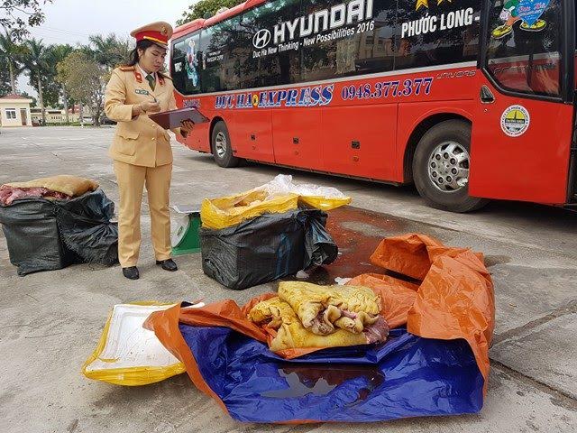 Sáng ngày 28/12, thông tin từ trạm CSGT quốc lộ 1A (Phòng CSGT Thanh Hóa) cho biết, đơn vị vừa bắt giữ 1 xe ô tô khách đang lưu thông theo hướng Hà Nội - TP. Hồ Chí Minh, chở 250kg thịt động vật không rõ nguồn gốc.