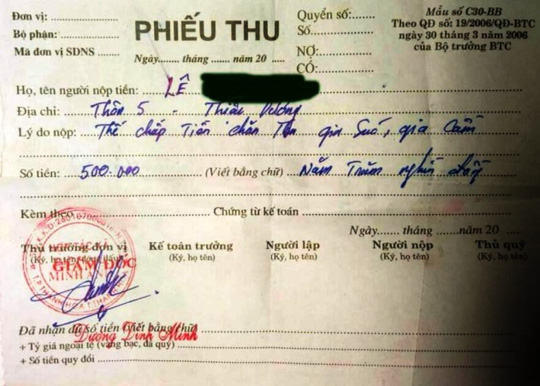 Phiếu thu tiền thế chấp chăn thả gia súc, gia cầm.