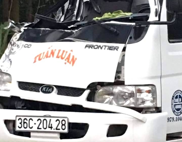 Cú va chạm mạnh khiến anh Trịnh Đình Sơn ngồi bên ghế phụ xe tải mang BKS 36C-204.28 bị thương nặng và tử vong trên đường đi cấp cứu.