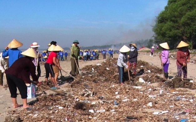 Người dân tại vùng biển Thanh Hóa làm vệ sinh môi trường phòng chống dịch bệnh lây nan.