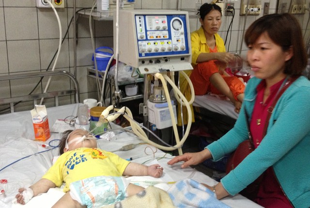 Bệnh nhi bị sởi đang điều trị tại Bệnh viện.