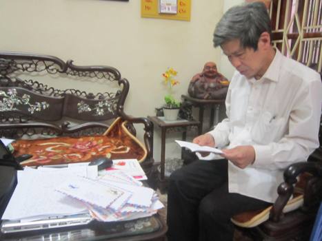 Ông Viễn soạn đơn thư để gửi cơ quan chức năng