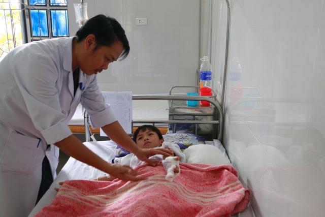 “Trước tình trạng đó, các bác sĩ Khoa Ngoại tiến hành cắt lọc, tháo bỏ xương bàn 4, 5 và tiến hành khâu vết thương”, bác sĩ Ngọc cho biết và thông tin thêm: “Mỗi năm vào dịp Tết Nguyên đán có khoảng 2 đến 3 bệnh nhân vào nhập viện do tự chế pháo nổ, chủ yếu ở lứa tuổi học sinh 8 đến 16 tuổi, nhưng với trường hợp em Quyết là nặng nhất, ngoài mất 2 ngón tay thì mất khoảng 60% chức năng bàn tay trái”.