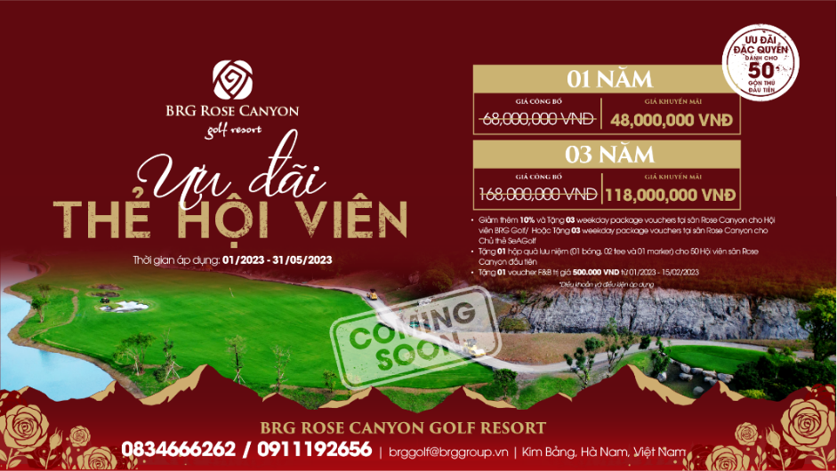 Sân Rose Canyon Golf Resort được kỳ vọng sẽ trở thành điểm đến hấp dẫn mới của tỉnh Hà Nam trong năm 2023, đồng thời tiếp tục góp phần nâng tầm hình ảnh du lịch gôn của khu vực miền Bắc khi mang tới một tiêu chuẩn cao cấp về dịch vụ và cơ sở vật chất cho môn thể thao quý tộc này. Hãy nhanh tay đăng ký thẻ hội viên tại Rose Canyon Golf Resort để trải nghiệm sớm nhất những ưu đãi hấp dẫn dành riêng cho những khách hàng đầu tiên !