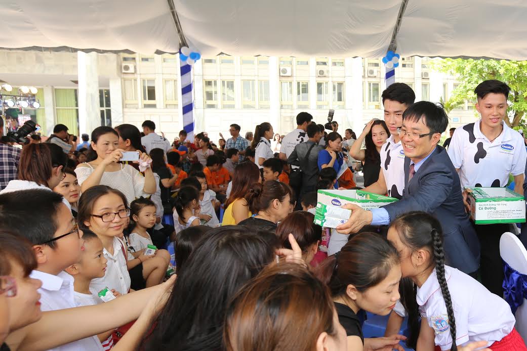 Ông Phan Minh Tiên – Giám đốc Điều Hành Vinamilk trao sữa cho các em nhỏ