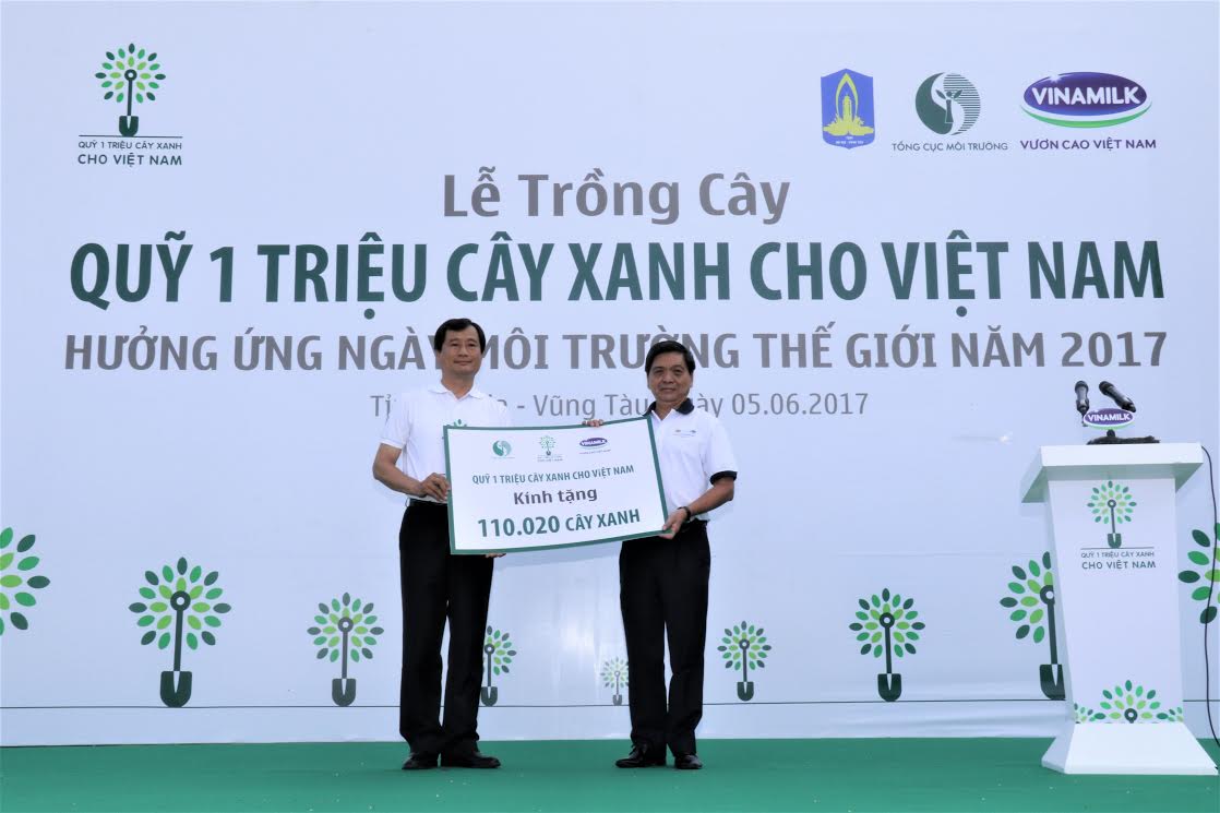 Năm nay, để đánh dấu cột mốc 5 năm chặng đường trồng thêm cây xanh cho Việt Nam của Quỹ và đăc biệt, hưởng ứng ngày Môi trường Thế giới 05/06/2017 với chủ đề “Sống hài hòa với thiên nhiên”, Tổng cục môi trường và công ty Cổ Phần Sữa Việt Nam – Vinamilk đã chọn tỉnh Bà Rịa Vũng Tàu là điểm tiếp theo của chương trình “Quỹ 1 triệu cây xanh cho Việt Nam” và là điểm đến đầu tiên của hành trình “Quỹ 1 triệu cây xanh cho Việt Nam” năm 2017.